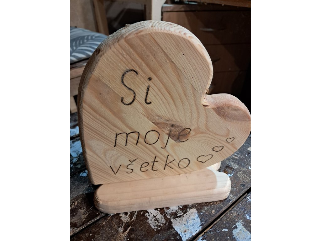 Srdce vyrobené z dreva pre zamilovaných a pre milovaných, vyrobené s podstavcom.