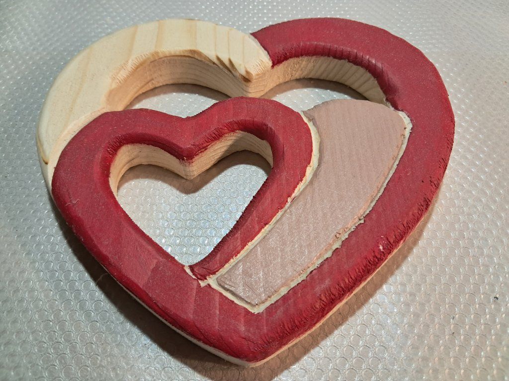 Srdcia vyrobené z dreva, krásne vyrezané, vyfrézované a namaľované
