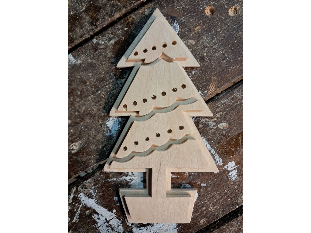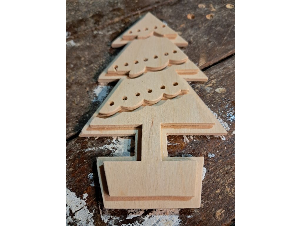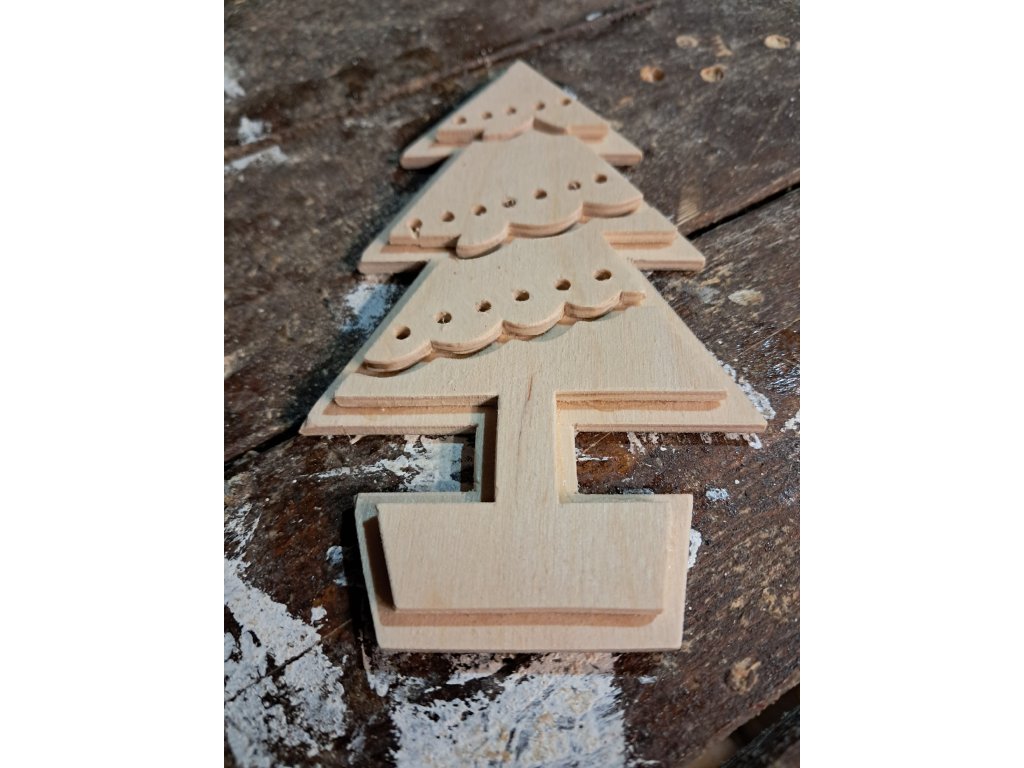 Vianočný stromček vyrobený z preglejky na zavesenie na Vianočný stromček