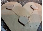 Malé srdíečka z preglejky vyrobené na väčšom srdci z preglejky.
