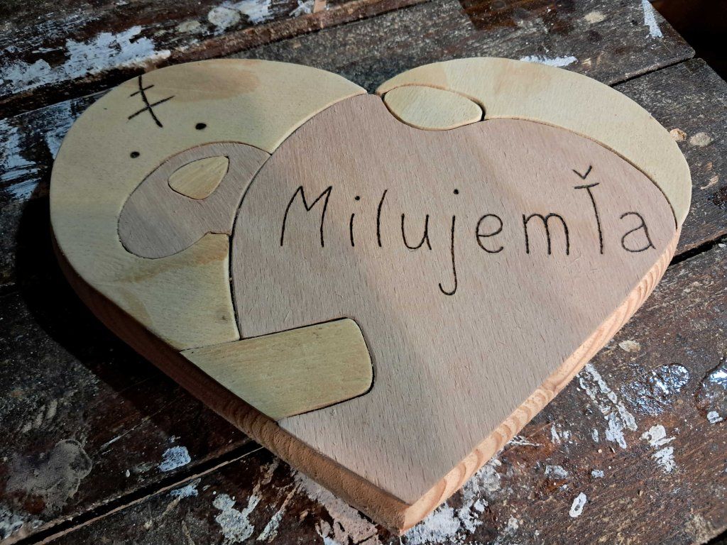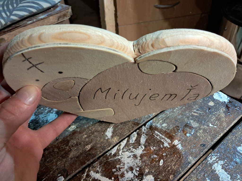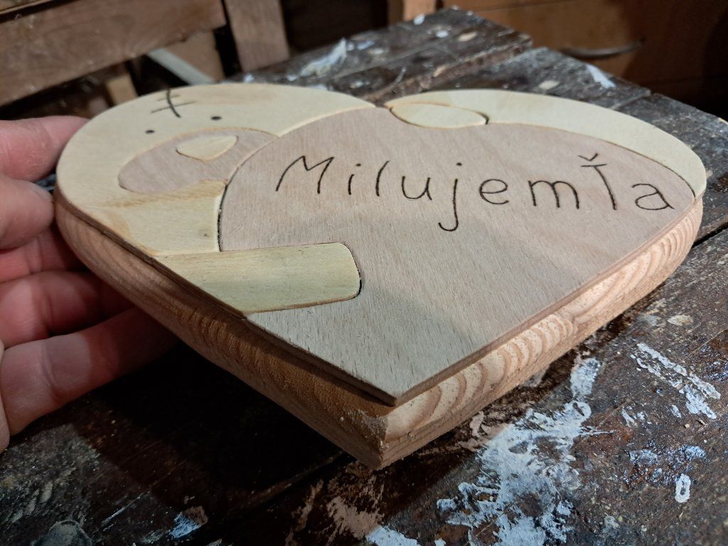 Podklad srdca jej zo smrekového dreva a povrch vyrobený z preglejky.